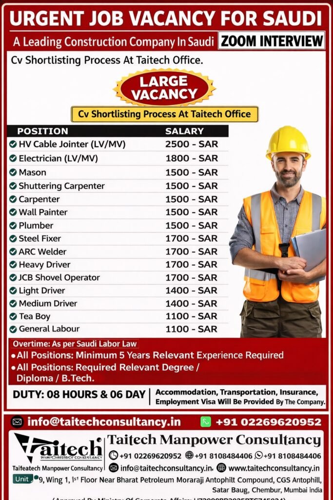 To apply for any job position please send your updated CV, education certificates, skype, zoom id in your cv for an easy online interview. experience certificates, and passport copy in PDF format to given email address. Don’t forget to mention the job position in the email subject line..