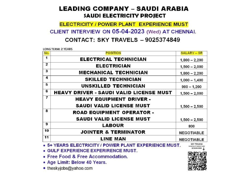 • Saudi Arabia job vacancy for Indian freshers