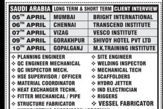 Client Interview Shortly in Mumbai & Chennai ONE OF THE LEADING COMPANY-SAUDI ARABIA LONG TERM JOB