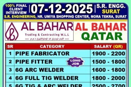 Job requirements in Qatar with Salary SR Engg Surat Gujarat