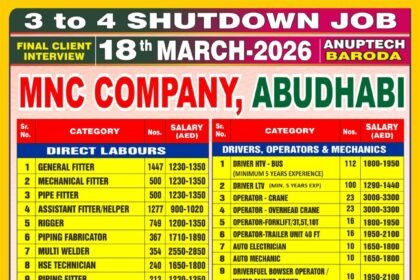 Sheet Name: 3 to 4 Month Shutdown Job – Abu Dhabi MNC Interview